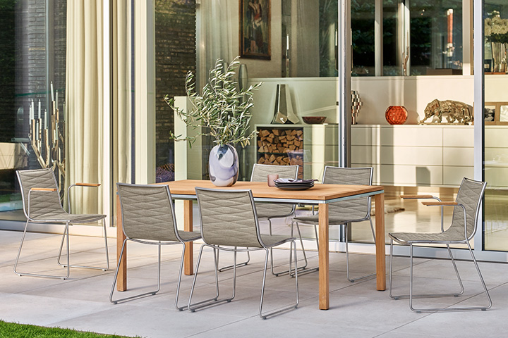 Erweiterung der Outdoorküche mit integrierten Tischzonen.