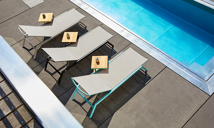 Stapelbare Aluminiumliege mit Gewebebespannung