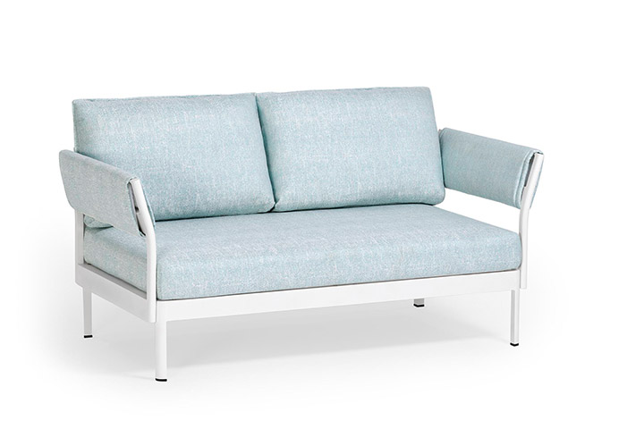 Die Rückenlehnen und Ablageelemente des Sofas können modular