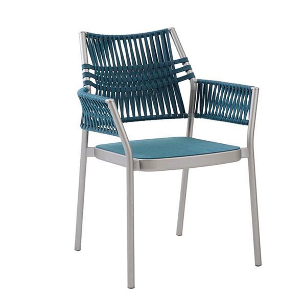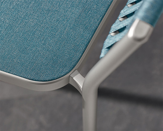 stapelbarer Stuhl in Edelstahl mit Gewebebespannung